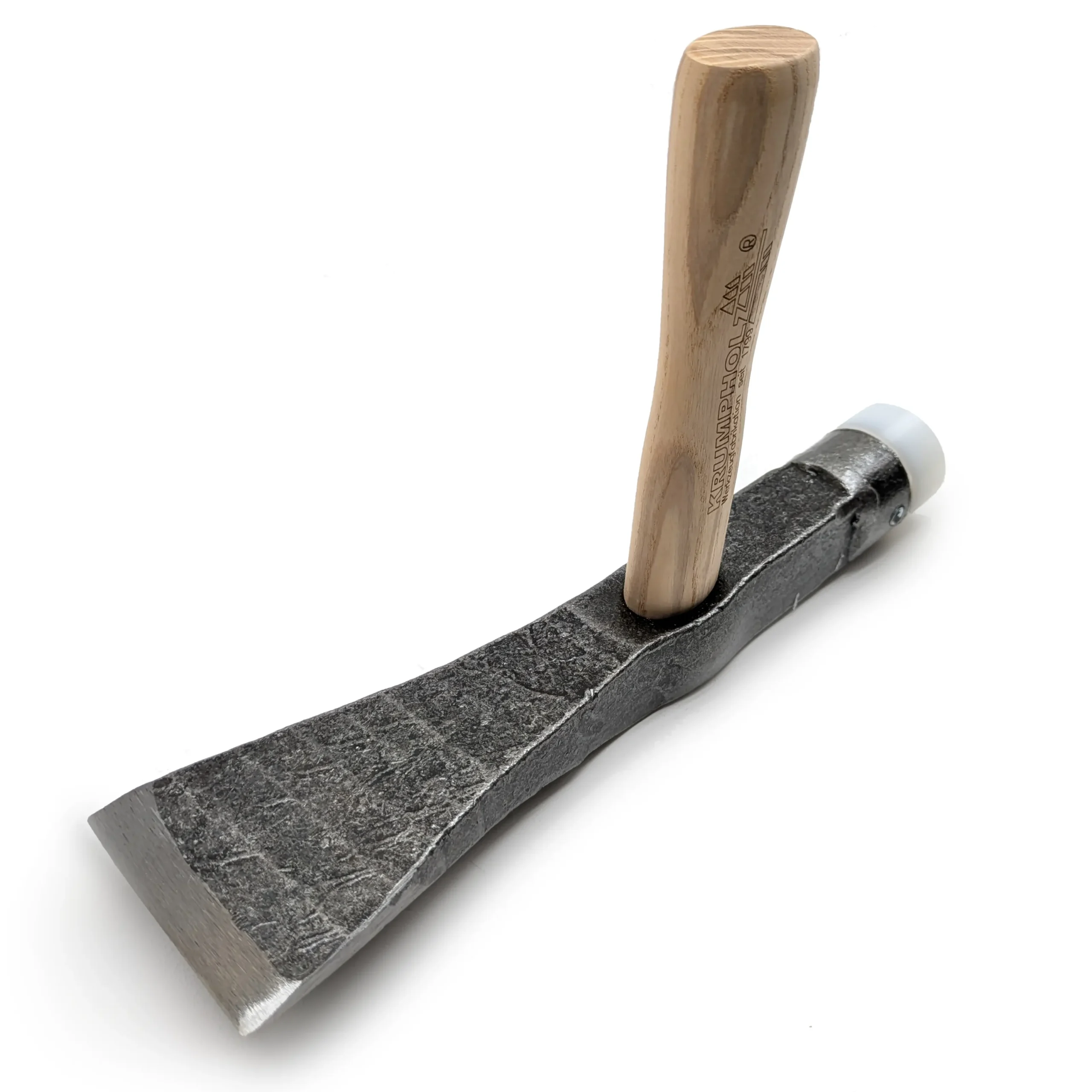 Geschmiedeter Berliner Pflasterhammer mit 1000 Gramm Kopfgewicht und PE-Schlagkopf zum Verlegen von Natursteinen und Pflaster. Die lange Schneide von dem Berliner Hammer ist perfekt zum Vorbereiten des Splittbettes und zum Bearbeiten / Beschlagen der Steine. Der kurze Stiel von 18 Zentimetern sorgt für ein besseres Handling beim Setzen. Mit der gatten Seite werden die Pflastersteine/ das Kopfsteinpflaster in das Splittbett oder den Mörtel geklopft.