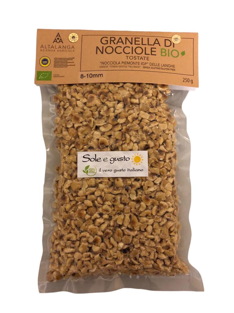 Die Haselnüsse wachsten auf 700m ü.M. in der Region von Alba (Piemont) und man sagt, dass diese einer der Weltbesten Haselnüsse sind. Durch ein eigenes entwickeltes System mit Naturharz und Honig, schütze Altalanga ihre Haselnussplantagen auf natürliche Art vor Schädlinge. Auch feuchte Monate können so überwunden werden.