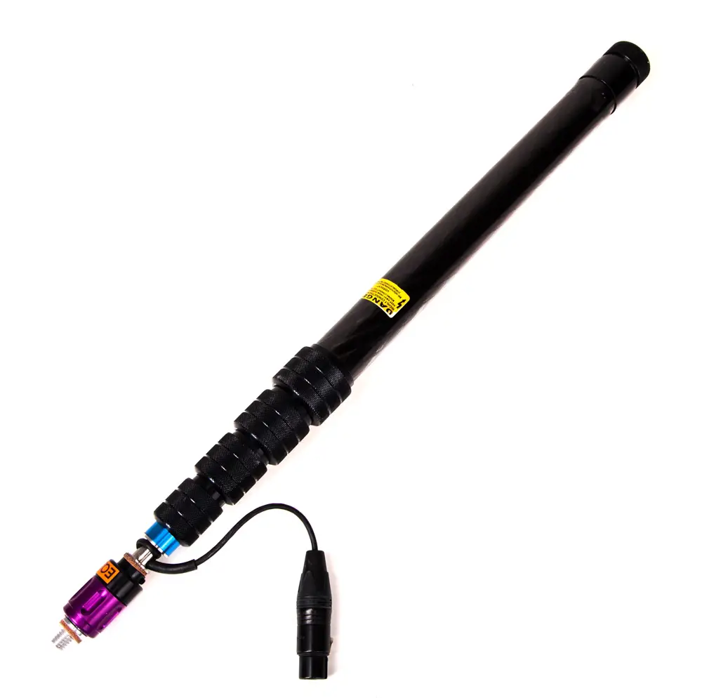 Die QX565 wurde speziell für Dokumentar- und ENG Booming-Arbeiten entwickelt. Durch die 5 Segmente wird das Verhältnis zwischen ausgefahren und eingeklappt verbessert, was den Transport erleichtert, gleichzeitig aber auch die nötige Länge bietet. Die geflochtenen Karbonfaserrohre haben eine Stärke von 1mm, was die QX565 gleichzeitig extrem leicht und widerstandsfähig macht. Die Tonangel verfügt über ein internes Spiralkabel mit einem Ausgang auf der Unterseite, wodurch verhindert wird, dass es sich verknotet.