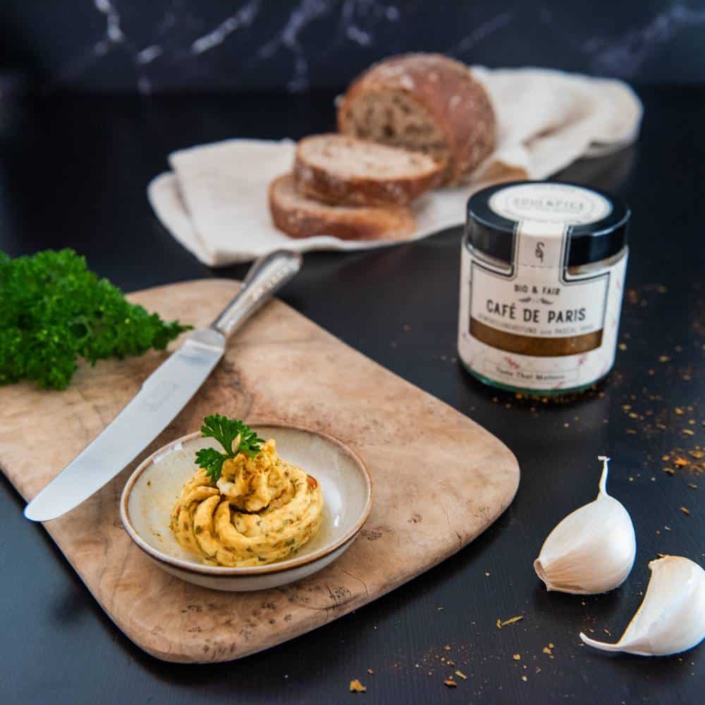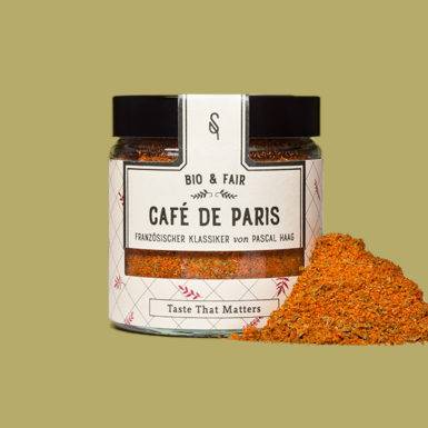 „Café de Paris“ ist ein fester Bestandteil der französischen Küche, doch wusstest du, dass diese Gewürzmischung in Genf entwickelt wurde? Ursprünglich wurde sie als Butter oder Sauce zu gegrilltem Rindfleisch serviert, aber ihre Vielseitigkeit macht sie auch zu einem hervorragenden Begleiter für Gemüse, insbesondere Kartoffeln, Spargel und andere Wurzelgemüse sowie Fisch.
