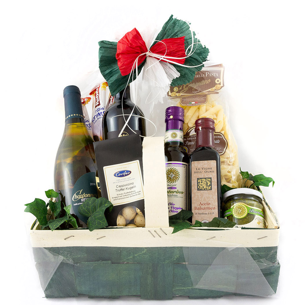 Dieser Geschenkkorb präsentiert Ihnen einen Hauch von Italien. Er enthält beispielhaft die folgenden Produkte: