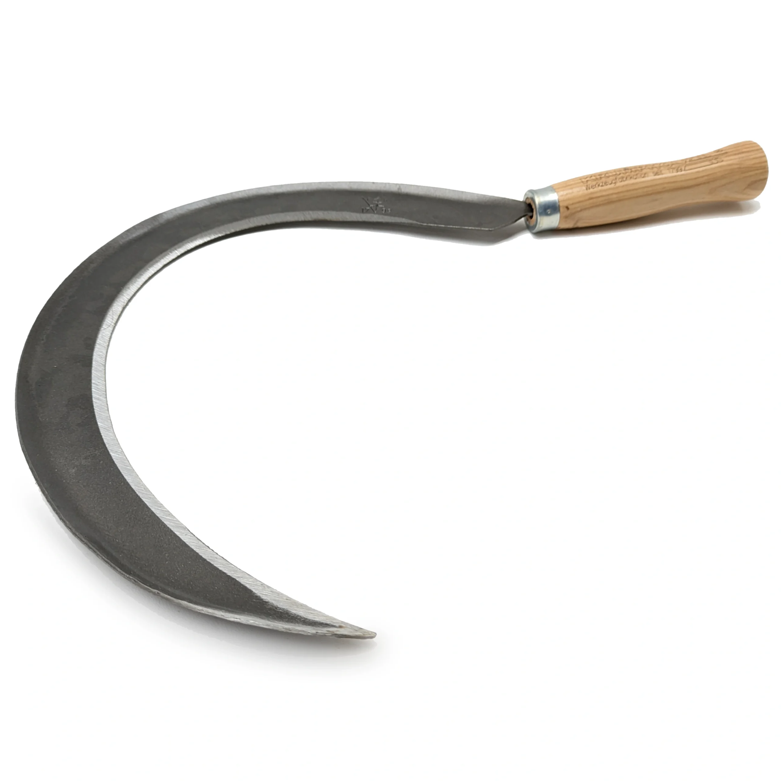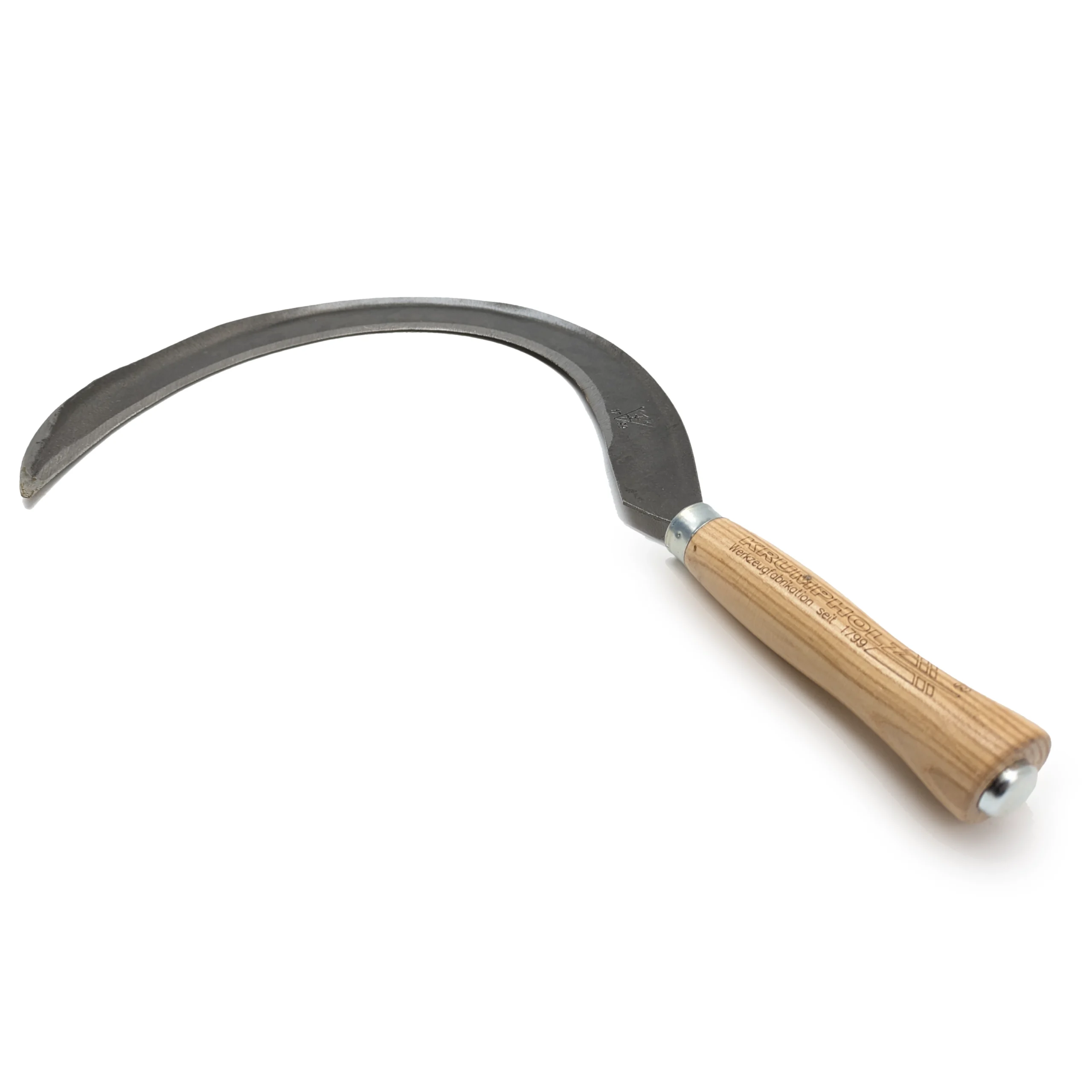 Größere Gartensichel Nr. 0652 von Krumpholz, mit lackiertem Eschengriff für Rechtshänder. Zum Entfernen von leichtem Gestrüpp und verblühten Stauden.