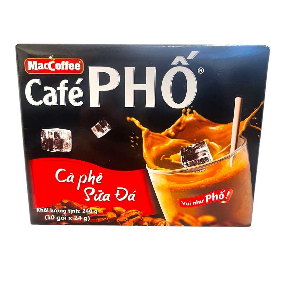 Kaffee „Phố“ MacCoffee (10 x 24 g) 240 g ist eine aromatische 3-in-1-Instant-Kaffeemischung, die den authentischen Geschmack von vietnamesischem Straßenkaffee bietet. Die Kombination aus kräftigem Robusta-Kaffee, cremigem Milchpulver und feiner Süße sorgt für ein reichhaltiges, vollmundiges Kaffeeerlebnis. Ideal für den schnellen Genuss zu Hause oder unterwegs – einfach heißes Wasser hinzufügen, umrühren und genießen! Perfekt für alle, die vietnamesischen Kaffee lieben und Wert auf Komfort und Geschmack legen.