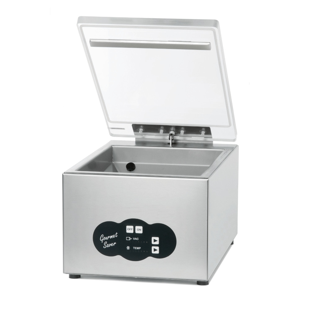 Speziell für Einsteiger in den Bereich Vakuumverpacken oder kleinere Küchen gibt es jetzt von Komet mit dem Gourmet Saver eine neue Maschine. Aufgrund seines sehr geringen Platzbedarfs kann er praktisch überall aufgestellt werden – ganz egal ob in der Küche, im Nebenraum oder unterwegs auf Veranstaltungen. Der Gourmet Saver ist einfach zu handhaben, mit wenigen Handgriffen aufgestellt und sofort bedienungsbereit. Darüber hinaus sind verschiedene Vakuum- und Schweißzeiten einstellbar. Dank Edelstahlgehäuse und -wanne ist er einfach zu reinigen und damit besonders hygienisch. Es genügt ein einfacher 230 Volt Stromanschluss. In Verbindung mit dem Thermalisierer Emily ist der neue Gourmet Saver der perfekte und preisgünstige Einstieg in das Thema Vakuumgaren (Sous-Vide).Technische Daten: