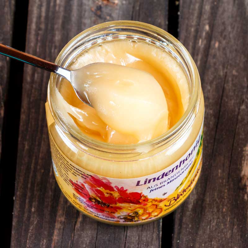 [/vc_column_inner][vc_column_inner offset=“vc_col-lg-6 vc_col-md-6″][vc_empty_space height=“30px“][vc_single_image image=“14498″ img_size=“full“ alignment=“center“ style=“vc_box_rounded“][vc_empty_space height=“20px“][vc_custom_heading text=“Eignung und Tipps zur Verwendung“ font_container=“tag:h3|text_align:left“ use_theme_fonts=“yes“][vc_column_text]Lindenhonig hat einen außerordentlich hohen Wert für die Gesundheit. Heiß genossen mit Lindenblütentee oder heißem Holundersaft ist Lindenhonig ein wahrer Gesundbrunnen. Aber auch pur unübertroffen, zur Leistungsteigerung und allgemeinen Heilung von Körper, Seele und Geist. Lassen sie sich den Geschmack von tausenden Lindenblüten auf der Zunge zergehen und spüren Sie die phänomenale Wirkung von Lindenblütenhonig aus ökologischer Bienenhaltung![/vc_column_text][vc_empty_space height=“25px“][vc_single_image image=“14488″ img_size=“full“ add_caption=“yes“ alignment=“center“ style=“vc_box_rounded“][vc_empty_space height=“12px“][/vc_column_inner][/vc_row_inner][vc_row_inner content_placement=“top“ css=“.vc_custom_1535400538429{padding-top: 20px !important;padding-bottom: 20px !important;}“][vc_column_inner offset=“vc_col-lg-6″][vc_empty_space height=“12px“][vc_column_text]Unser Deutscher Lindenhonig aus ökologischer Imkerei ist ein sogenannter Sortenhonig, was sich auf die monoflorale botanische Herkunft dieses großartigen reinen Bienenhonigs bezieht.[/vc_column_text][vc_custom_heading text=“Honigbiene auf Lindenblüte“ font_container=“tag:h3|text_align:left“ use_theme_fonts=“yes“][vc_column_text]Honigbienen haben die besondere Eigenschaft blütenstet zu sein, was bedeutet, dass die Honigbienen darauf spezialisiert sind, nicht Blüten von verschiedenen Arten anzufliegen, sondern pro Ausflug nur Blüten einer Art zu befliegen, was die Bestäubungsarbeit viel leichter und effektiver macht, für Biene und Mensch.[/vc_column_text][vc_empty_space height=“12px“][vc_single_image image=“14487″ img_size=“full“ add_caption=“yes“ alignment=“center“ style=“vc_box_rounded“][vc_empty_space height=“25px“][vc_column_text]Eine unserer eigenen Honigbienen beim Sammeln auf einer geöffneten Lindenblüte. Die Biene hat in den Körbchen an den Hinterbeinchen schon orangefarbenen Blütenpollen gesammelt (auch hier im Shop erhältlich).[/vc_column_text][vc_empty_space height=“12px“][/vc_column_inner][vc_column_inner offset=“vc_col-lg-6″][vc_single_image image=“14489″ img_size=“full“ add_caption=“yes“ alignment=“center“ style=“vc_box_rounded“][vc_empty_space height=“2px“][vc_custom_heading text=“Lindenblätter in Herzform“ font_container=“tag:h3|text_align:left“ use_theme_fonts=“yes“][vc_column_text]Die Linde ist vielleicht von allen Bäumen der wichtigste für die Bienen. Honigbienen lieben die Linde, sowohl als Schwarmbaum bzw. Bienenbaum zur Behausung, als auch als Tracht- oder Brotbaum, der den Bienen Blütenpollen, Blütennektar und Honigtau liefert. Die Linde ist eine Lichtbaumart ist unverzichtbarer Hauptbestandteil für jeden Bienenwald.[/vc_column_text][vc_empty_space height=“15px“][vc_column_text]Zuerst blüht die Sommerlinde, ein majestätischer Baum, dann folgt die kleinere Winterlinde. Lindenbäume finden sich sowohl in Lindenwäldern, als auch in Parks und schönen alten Lindenalleen.[/vc_column_text][/vc_column_inner][/vc_row_inner][vc_row_inner equal_height=“yes“ content_placement=“middle“ css=“.vc_custom_1535383104140{padding-top: 10px !important;padding-bottom: 20px !important;}“][vc_column_inner offset=“vc_col-lg-4 vc_col-md-6″][vc_custom_heading text=“Die Linde, der Lieblingsbaum der Imker, ein Blütenfest für die Bienen“ font_container=“tag:h3|font_size:22px|text_align:left“ use_theme_fonts=“yes“][vc_single_image image=“14490″ img_size=“full“ add_caption=“yes“ alignment=“center“ style=“vc_box_rounded“][vc_empty_space height=“25px“][vc_column_text]Lindenhonig war im Mittelalter der am wertvollsten geachtete Honig. Dieser Honig ist auch eine gute Grundlage für einen hervorragenden Honigwein aus Lindenhonig. Schauen Sie sich bei Interesse auch unser Met-Sortiment an.[/vc_column_text][vc_empty_space height=“15px“][/vc_column_inner][vc_column_inner offset=“vc_col-lg-4 vc_col-md-6″][vc_custom_heading text=“Linde auf dem Bienenhof“ font_container=“tag:h3|font_size:22px|text_align:left“ use_theme_fonts=“yes“][vc_column_text]Über der sommerlichen Bienen-Blumenwiese weht ein Hauch des Duftes von Lindenblüten von dem daneben blühenden Lindenbaum.[/vc_column_text][vc_empty_space height=“12px“][vc_single_image image=“14486″ img_size=“full“ add_caption=“yes“ alignment=“center“ style=“vc_box_rounded“][vc_empty_space height=“25px“][/vc_column_inner][vc_column_inner offset=“vc_col-lg-4″][vc_custom_heading text=“Der Kauf von Lindenhonig ist wichtig für die Biodiversität“ font_container=“tag:h3|font_size:22px|text_align:left“ use_theme_fonts=“yes“][vc_column_text]Und darüber wärmt die Sommersonne alle Lebewesen mit Strahlen, die sich wie Küsse auf die Haut legen. Man meint die Sommersonne im Lindenhonig zu fühlen und zu schmecken.[/vc_column_text][vc_empty_space height=“15px“][vc_column_text]Die für die Biodiversität sehr wichtigen Hummeln werden von den reich blühenden Linden magnetisch angezogen. Durch jedes gekaufte Glas Lindenhonig wird das Bewußtsein und das Engagement bzw. Einsatz für den Erhalt alter historischer Lindenalleen und den Erhalt wertvoller freistehender Linden-Einzelbäume gestärkt. Alles was den Honigbienen zu Gute kommt, nützt im Falle der Linden auch den besonders wertvollen wilden Hummeln.[/vc_column_text][vc_empty_space height=“15px“][vc_single_image image=“14491″ img_size=“full“ add_caption=“yes“ alignment=