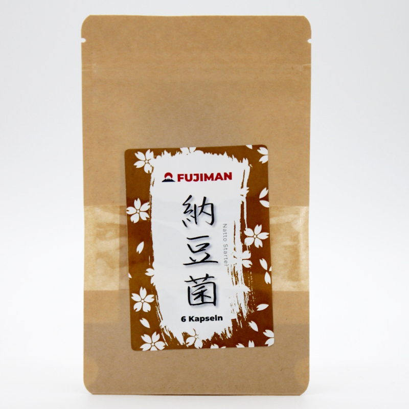 Bringe das traditionelle japanische Superfood Natto in deine Küche mit dem Natto Starter 6 Kapseln von Fujiman. Diese Starter-Kapseln ermöglichen es dir, Natto einfach und bequem zu Hause herzustellen.