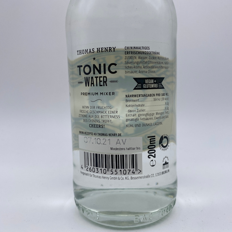 Wasser, Zucker, Kohlensäure, Säuerungsmittel Citronensäure, natürliches Aroma, Antioxidationsmittel Ascorbinsäure, Aroma Chinin. Vegan und glutenfrei.