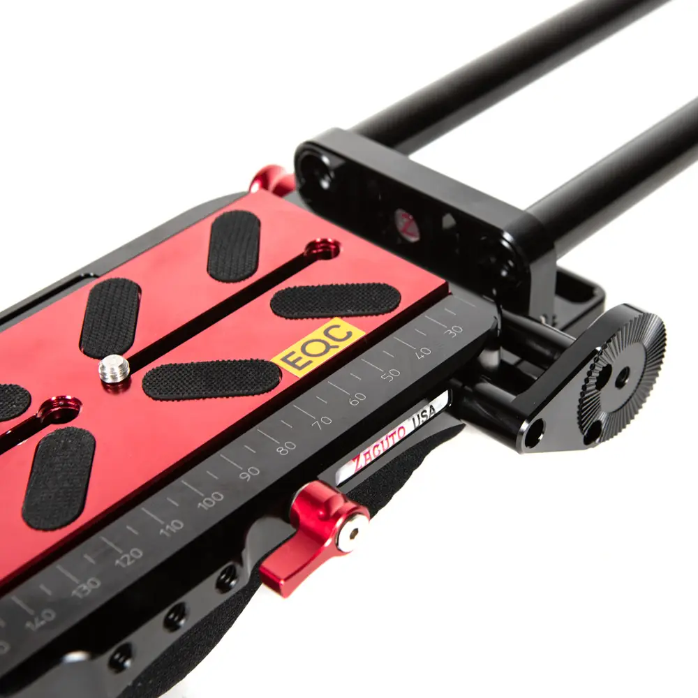 Bei den auf VCT Pro basierenden Rigs geht es darum, die perfekte Balance für deine Kamera zu finden. Die Zacuto VCT Pro Grundplatte mit ihrer leichten, verstellbaren Rod-Befestigung ist weit hinten an der Platte platziert und bietet viel Platz für die Montage von Zubehör unter der Kamera. Auf diese Weise kannst du deine Kamera weiter hinten auf der Platte positionieren und den Schwerpunkt deines Rigs direkt über Ihrer Schulter halten.