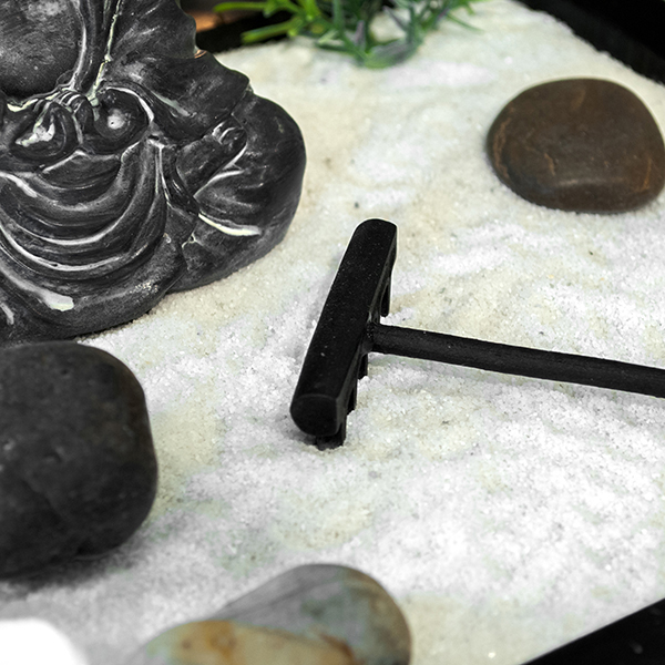 Dieser wunderschöne Zen-Garten mit Gong, Rechen, Sand, Kieselsteinen, Teelicht und einer kleinen Buddha-Figur beruhigt schon beim Anschauen. Er wurde aus Holz gefertigt und wird im Geschenkkarton geliefert. Mit den Maßen 27 x 20 x 30 cm ist es das perfekte Accessoire für jeden beliebigen Raum.
